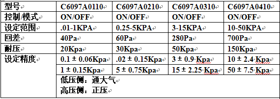 C6097A气体压力开关用于测量城市煤气、天然气、液化气及空气等气体的压力。